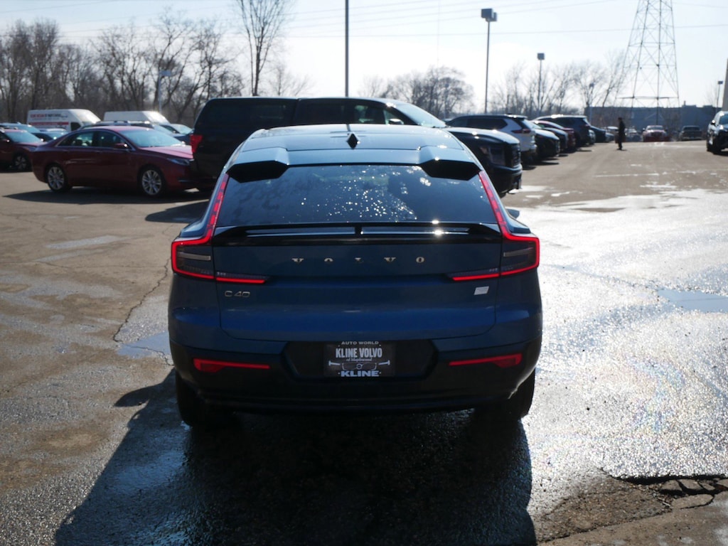 Fjord Blue Metallic 2023 Volvo C40 Recharge Pure Electric Ultimate Certified. Leather Seats, Sunroof/Moonroof, Backup Camera, Navigation System, Bluetooth, Apple Carplay, Android Auto, Certified, Low Miles, C40 Recharge Pure Electric Ultimate, Fjord Blue Metallic. Family owned and operated since 1972 Kline Volvo of Maplewood continues to be recognized as one of the premier dealerships in the country. Ranked #1 in customer service receiving numerous Service Satisfaction and Sales awards . Kline Volvo's extra commitment to service extends to all its customers with to-the-door shipping for those out-of-state and the affordable VIP package for luxury perks. Please visit our state-of-the-art facility where it is hassle-free and minutes from anywhere. If you'd like to make an appointment call Kline Volvo's sales team at 651-481-9600 Our efforts are directed toward presenting accurate and complete information. But errors can arise in pricing, mileage, financing terms, descriptions, availability or other content in the site. When errors occur, we reserve the right to make corrections and adjustments as needed with our apologies.