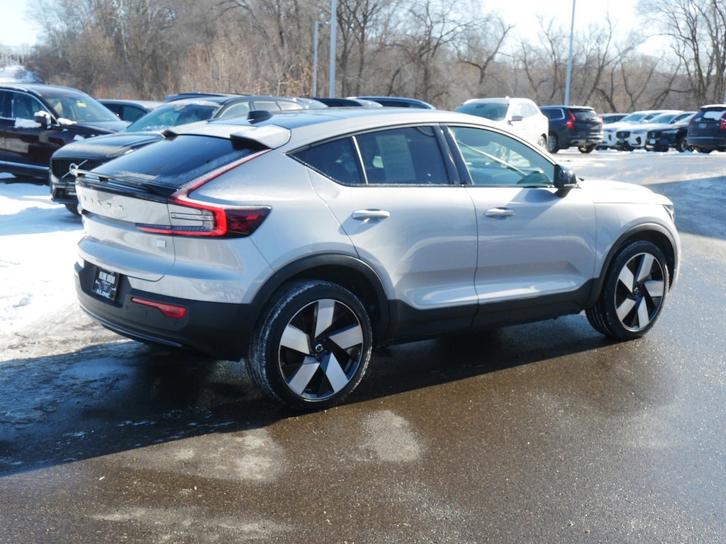 Silver Dawn Metallic 2023 Volvo C40 Recharge Pure Electric Ultimate Priced below KBB Fair Purchase Price! Certified. Backup Camera, Navigation System, Bluetooth, Apple Carplay, Android Auto, Certified, Low Miles, One Owner, C40 Recharge Pure Electric Ultimate, AWD. Family owned and operated since 1972 Kline Volvo of Maplewood continues to be recognized as one of the premier dealerships in the country. Ranked #1 in customer service receiving numerous Service Satisfaction and Sales awards . Kline Volvo's extra commitment to service extends to all its customers with to-the-door shipping for those out-of-state and the affordable VIP package for luxury perks. Please visit our state-of-the-art facility where it is hassle-free and minutes from anywhere. If you'd like to make an appointment call Kline Volvo's sales team at 651-481-9600 Our efforts are directed toward presenting accurate and complete information. But errors can arise in pricing, mileage, financing terms, descriptions, availability or other content in the site. When errors occur, we reserve the right to make corrections and adjustments as needed with our apologies.